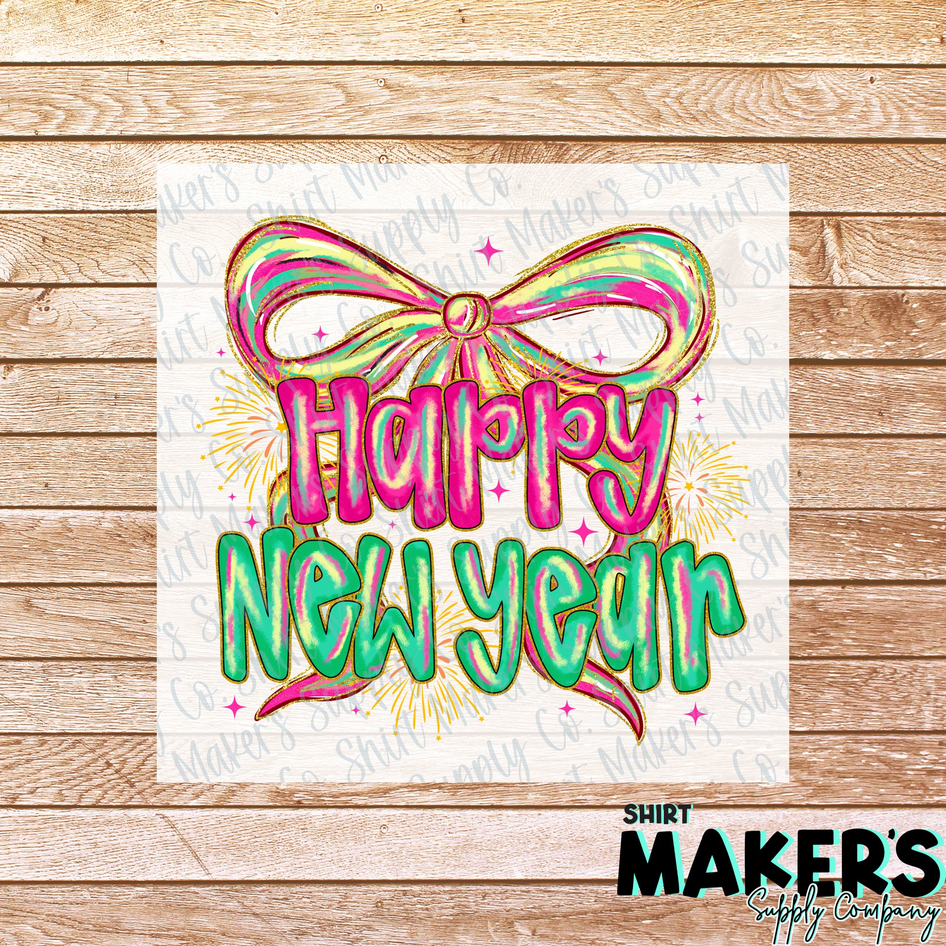 Happy New Year Bow DTF or Sublimation Transfer